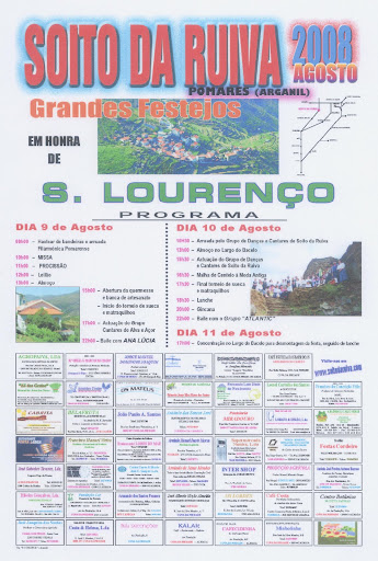 NOTA: O Rouxinol de Pomares, divulgará os programas dos festejos das diversas povoações da nossa freguesia, ou dos arredores se a exemplo do Soito da Ruiva me fizerem chegar essa informação.