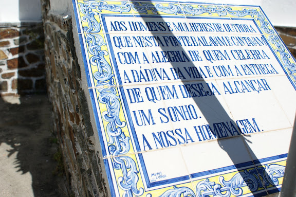 Um pormenor que me chamou a atenção no Sobral Gordo. Um pequeno painel de azulejos que contém um poema do tamanho do Mundo. Que coisa mais bonita!