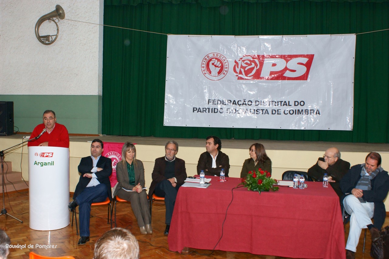 Presentes estiveram dirigentes e autarcas do PS, locais, do concelho, do distrito e nacionais: Na Mesa e da esq. para a dir. Abel Fernandes, Dr. Miguel Ventura, Dra Lurdes Castanheira, Presidente da Câmara de Gois, Carlos Ramos, Dr. Mario Ruivo, Presidente da Federação Distrital do PS Coimbra e deputado, Susana Amador, membro do Secretariado Nacional do PS e autarca de Odivelas, Dr. João Pedro Pimentel, deputado do Município de Arganil e prestigiado arganilense, e o Prof António Rochette, Coordenador do Gabinete de Estudos da Federação, cuja intervenção técnica versou a problemática do momento, no que concerne à extinção de freguesias.