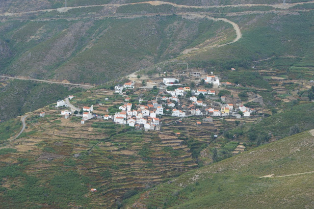 Hoje publico aqui uma fotografia que não estando "famosa" dá para ter uma noção mais exacta dos declives onde se situam duas povoações vizinhas : Porto Silvado, dando-nos a sensação de um "til" formado pelas suas casas, pertence à freguesia de Pomares, a Gramaça , sua vizinha , encontra-se mais acima na encosta e pertence à freguesia de Aldeia das Dez e ao concelho vizinho de Oliveira do Hospital. Estamos portanto nos limites da nossa freguesia e do nosso concelho. Porque irei "falar" um dia destes em socalcos, como prometido, é exactamente o Porto Silvado que ostenta uma paisagem que me servirá de modelo, e nada melhor que esta paisagem para podermos aquilatar da dimensão do trabalho humano que aqui foi realizado, criando condições de habitabilidade em lugares muito difíceis e hoje graças a esse trabalho estes lugares são magníficos.