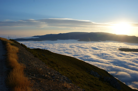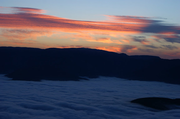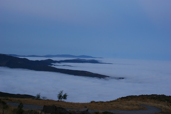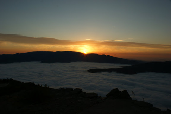 O nascer do Sol. A Serra do Açor é propícia a nevoeiros densos. Esta foto foi captada o ano passado num desses dias, em que o nevoeiro está abaixo do topo da Serra do Açor e assemelha-se a um imenso glaciar.