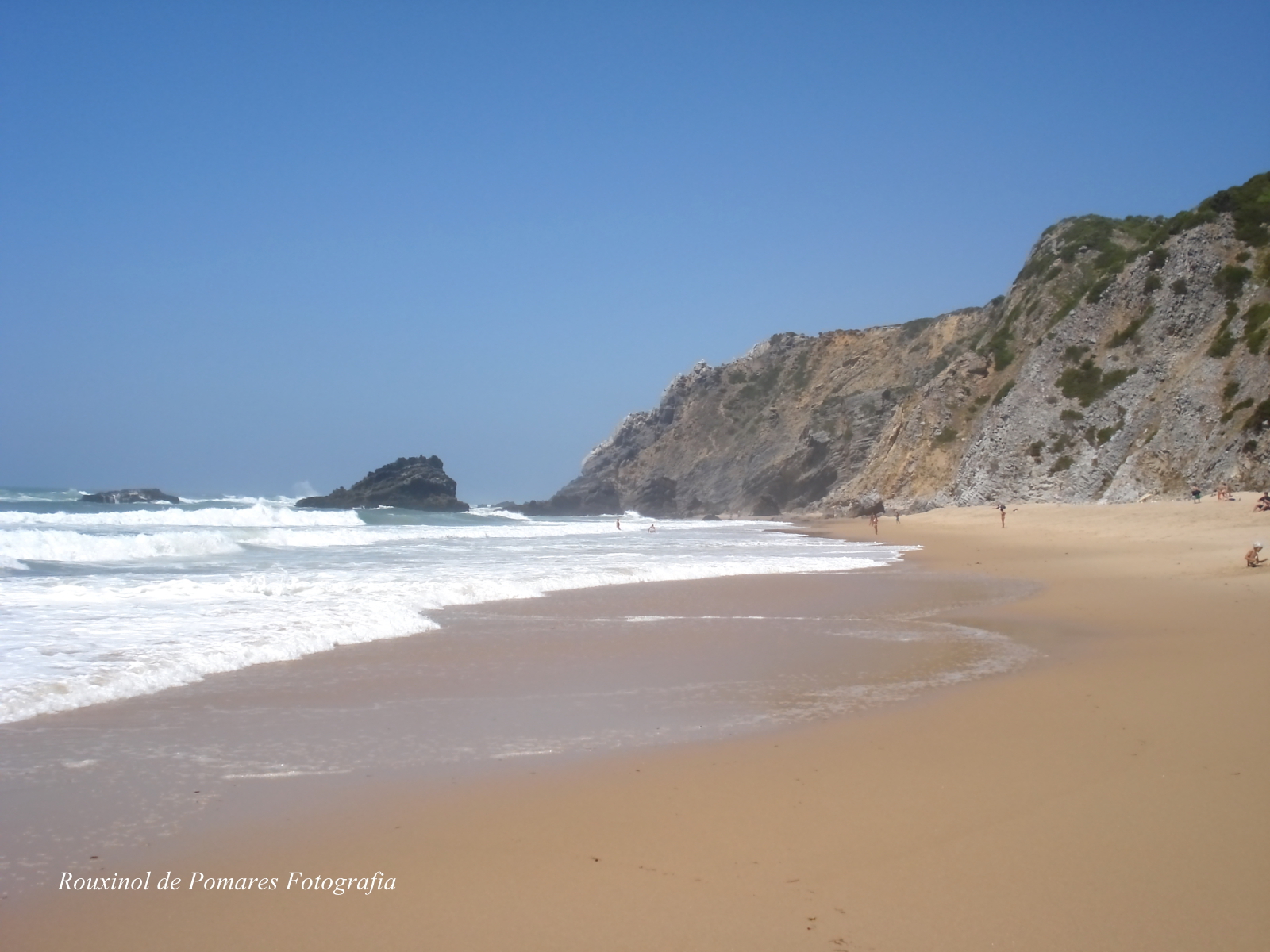 A época balnear aproxima-se, e o calor até já nos pede para pormos o pezinho na água. Fui até lá. Já por lá tinha passado há alguns meses atrás, porque foi noticia a devastação que o mar lhe causou neste inverno. Pelo aspecto, não creio que as forças da natureza reponham a areia que o mar levou, e ponho dúvidas se este ano a Praia da Adraga seja aquela praia a que me habituei a chamar minha.
